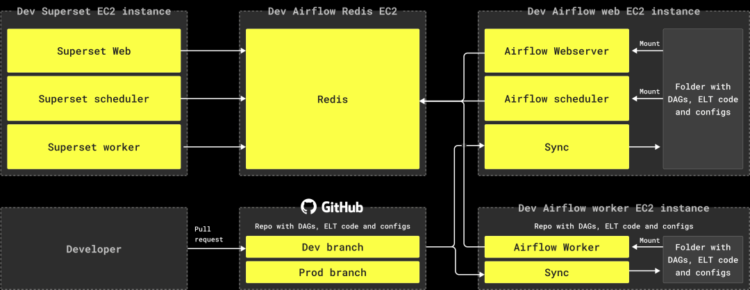 所有的 Airflow 和 Superset 组件通过一个 Redis 实例进行同步。