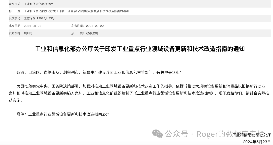 昨天工信部发了一个重磅文件,即工业和信息化部办公厅关于印发工业重点行业领域设备更新和技术改造指南的通知。