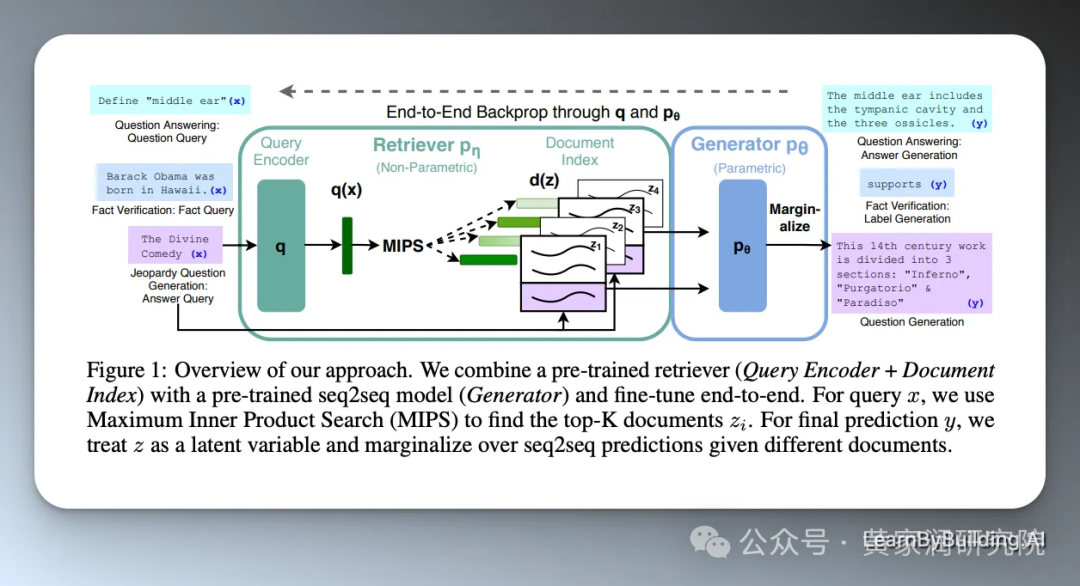 2. 通过在知识密集的下游任务上微调,RAG 可以实现最先进的结果,比现有的最大的预训练序列到序列语言模型还要好;
