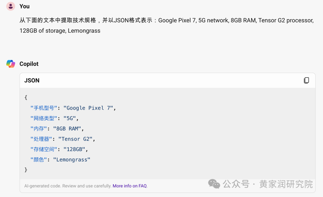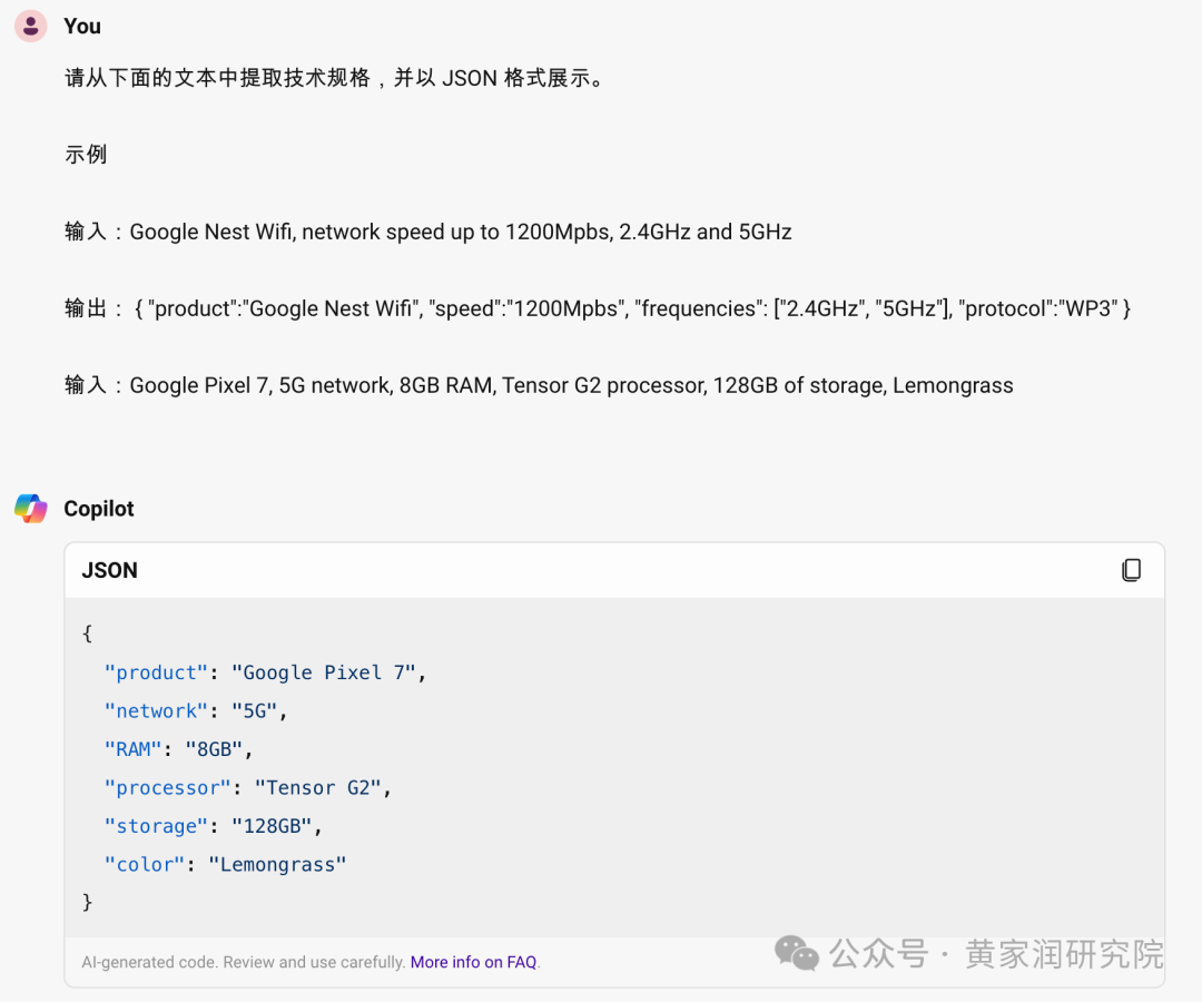 我们以上文中,提取手机技术规格的 Prompt 为基础,然后加上示例: