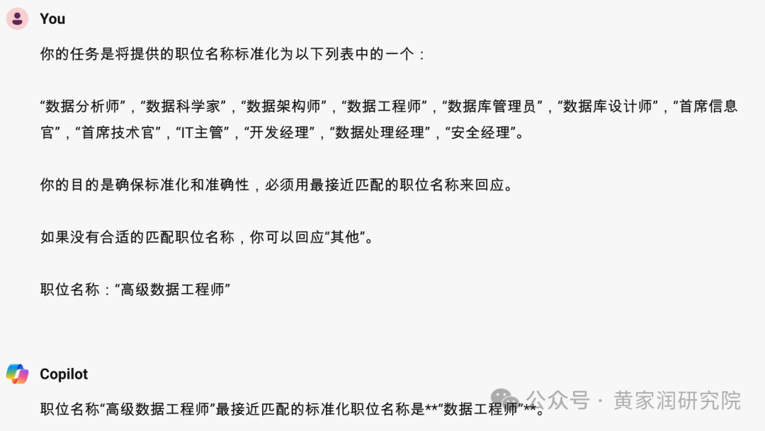 再以上文中标准化职称的 Prompt 为基础,对其进行扩展,加入示例: