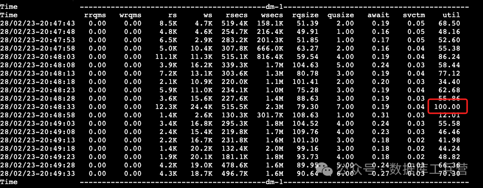 磁盘故障事件中,data 和 slog 会触发 IO 的快速拒绝,代表 IO 探测线程判断磁盘故障或 slog 判断写盘慢,有可能当时是磁盘真的有问题(如图 1),使用系统性能监控工具 tsar 或 vsar 查看磁盘的状态。图 1。