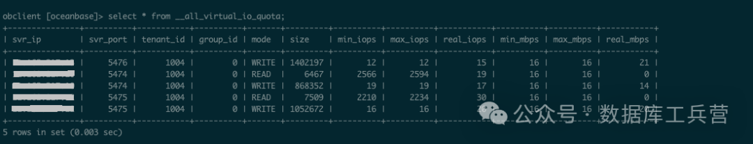 SELECT * FROM oceanbase.GV$OB_UNITS\G;达到 IOPS 配置上限。