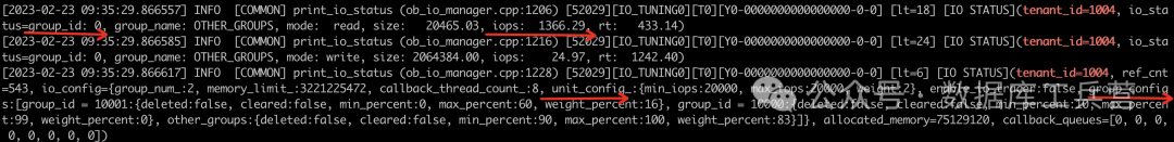 查看 IO 的配置,主要用于查看 IO 压力大、流量打满的情况下是否满足资源隔离约束。如果在大压力场景 IO 慢则可能是给定的资源规格太小。示例。