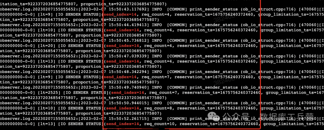 grep "IO SENDER STATUS"sender 队列卡住的问题,可以参考 IO 调度队列卡 这一节内容,目前看来这种错误在磁盘状态差的情况下比较容易出,定位到 io_prepare 阶段分内存耗时过久。