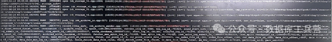 [2023-06-12 16:15:50.311863] WARN [STORAGE] print_access_storage_log(ob_i_storage.cpp:47) [16182][4130][YB420A12992F-0005EFDDF8A827B0] [lt=6] [dc=0] access storage op=storage appender_url=file:///obbackup/xxxxxxx size=0 Byte cost_ts=1008485 us speed=0.00 MB/s