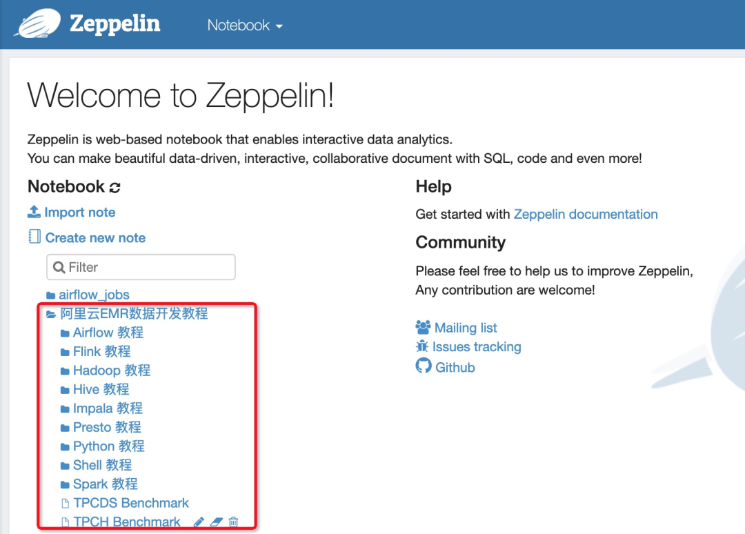 以上列举了一些我们针对 Notebook 改进易用性的点,还有很多特性这里就不一一例举,EMR-Studio 里提供了很多教程,方便大家学习使用。