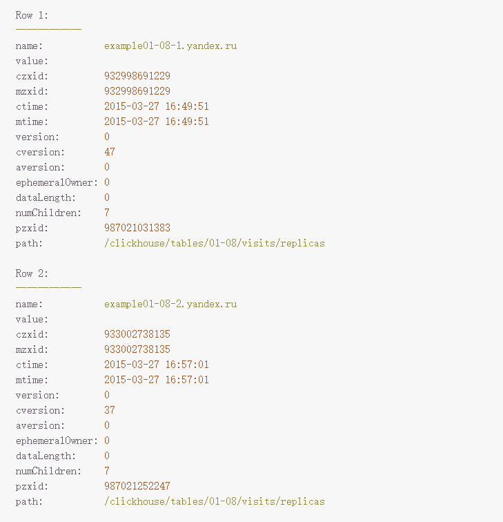SELECT * FROM system.clusters LIMIT 2 FORMAT Vertical;