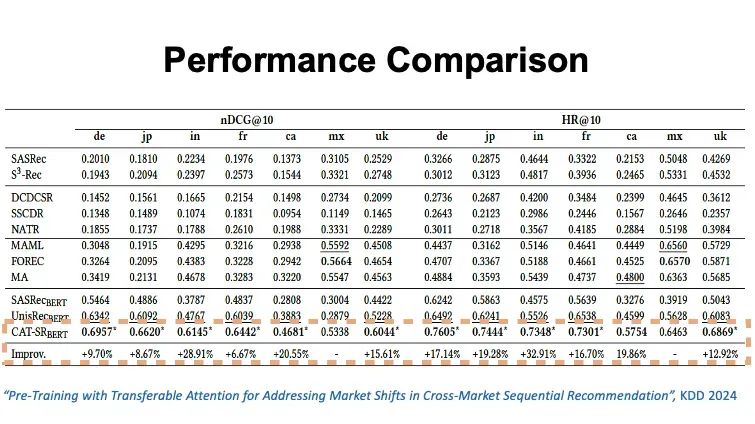 同时,推荐模型可以跨领域应用,例如从音乐推荐转向电子产品推荐,尽管推荐的物品不同,但用户是具有共性的。当然这也比较具有挑战。为此,在进行模型调优时,需要利用语言模型给出特定的指令,来根据不同产品的特性来调优。例如,我们在音乐领域训练了一个模型,再给它指令如何去训练针对电子产品领域的模型,最终也取得了不错的效果。由此可见,在某些特定领域里面,我们是有可能训练出一个基础模型的。