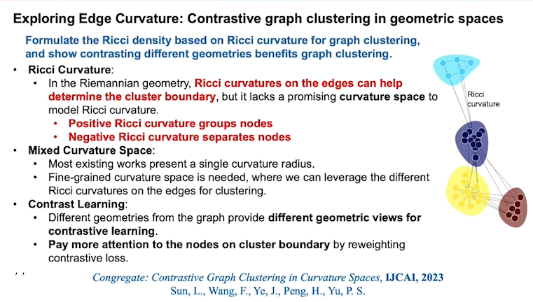今天我们讨论了图模型是否可以作为基础模型。前面提到,对于一个特定领域可能是可以成功的,但在完全不同的领域则可能面临挑战。然而,如果我们将图映射到非欧几里得空间,并转换为混合曲率空间,这将为我们提供描述不同图构造的新方式,这就给了我们希望可以将其发展为基础模型。