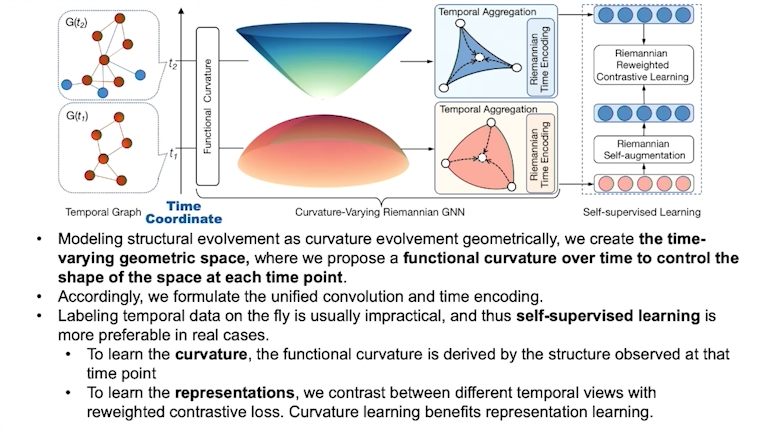 现实生活中,图的点边会随着时间不断变化。对于不断变化的图,如社交网络图,我们需要捕捉节点嵌入的变化以及曲率的变化。
