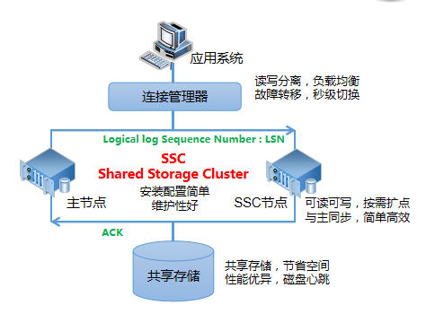 新系统的网管读写业务是经过连接管理器在主节点上运行的,而纯读业务是经过连接管理器由SSC辅节点来承担;连接管理器除起到读写分离、负载均衡的功能外,当主节点发生故障无法工作时,连接管理器还可快速地把运行正常的辅节点切换为可读写的新主节点;故障切换时间与故障发生时还在运行的负载有关,在负载不大的情况下,一般20秒之内可完成切换;为了系统的整体高可用,连接管理器也部署为多个,且与数据库服务器分开,防止相互干扰;数据库主、辅节点除了用心跳网络连接来判断彼此的工作状态外,如果心跳网络出了问题,新系统还设置了磁盘心跳,主、辅节点还可通过共享存储进行通讯,以防止系统发生脑裂问题。
