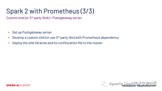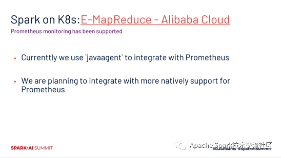 阿里云EMR团队在做的spark on k8s,目前已经对Prometheus监控进行了原生化的支持。目前我们实现的方式是基于javaagent,后续也会计划去引进更多的原生支持。