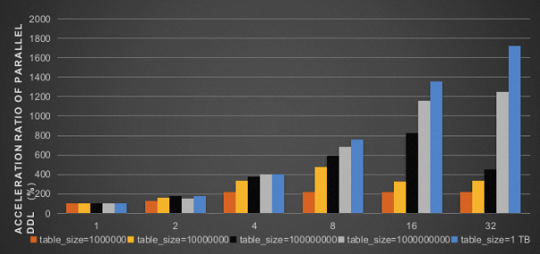 CALL populate_t0() ;并行DDL加速比效果如下图所示: