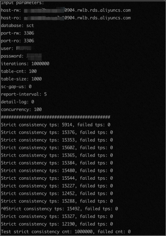 开启高性能全局一致性模式后,执行如下命令来进行一致性测试: