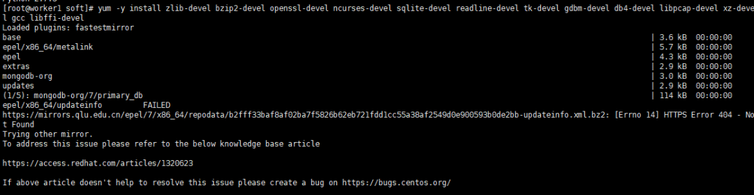 [root@worker1 soft]# yum -y install zlib-devel bzip2-devel openssl-devel ncurses-devel sqlite-devel readline-devel tk-devel gdbm-devel db4-devel libpcap-devel xz-devel gcc libffi-devel