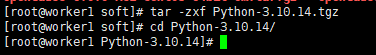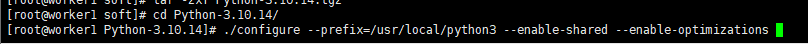 [root@worker1 soft]# tar -zxf Python-3.10.14.tgz[root@worker1 soft]# cd Python-3.10.14/[root@worker1 Python-3.10.14]#
