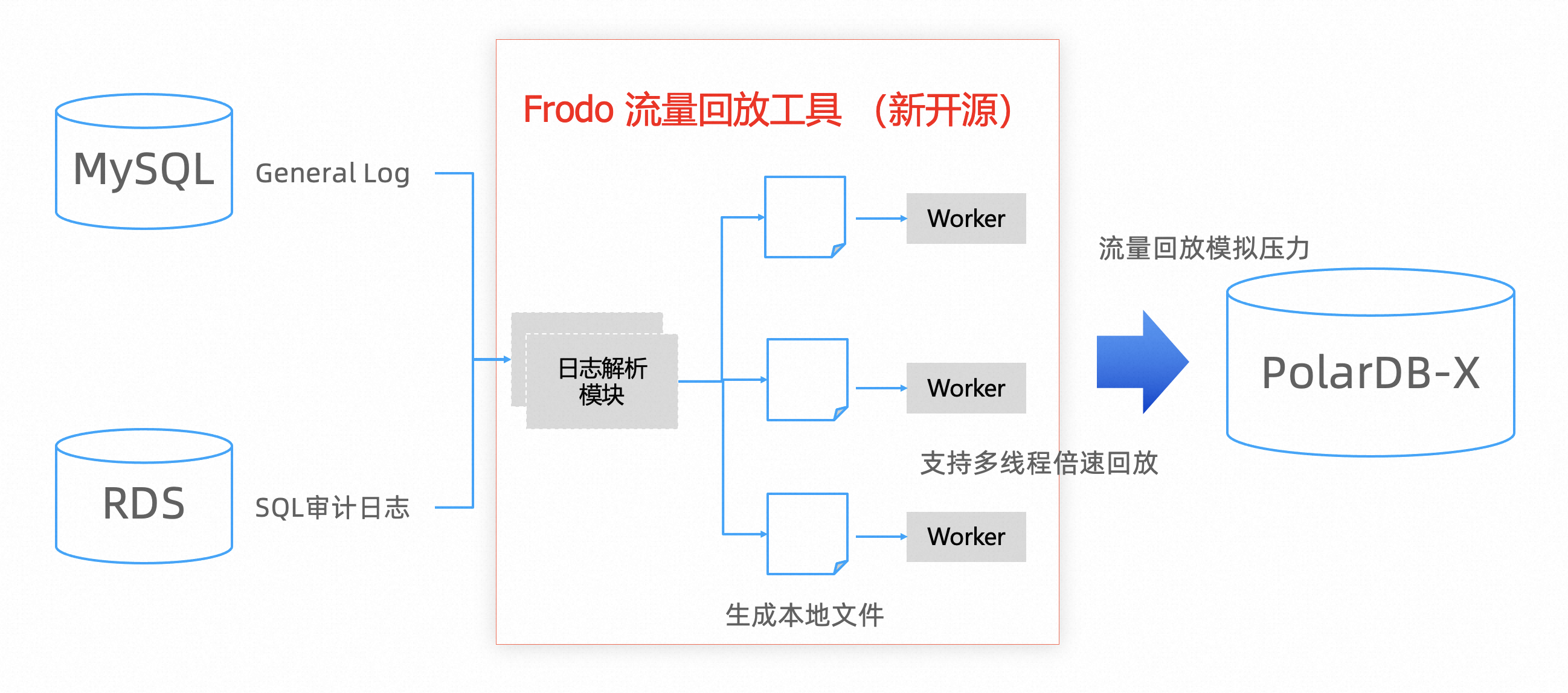 frodo是阿里云数据库团队开源的PolarDB-X配套工具,主打数据库流量回放,主要用于解决数据库交付过程中的业务兼容性和性能评估的工作。