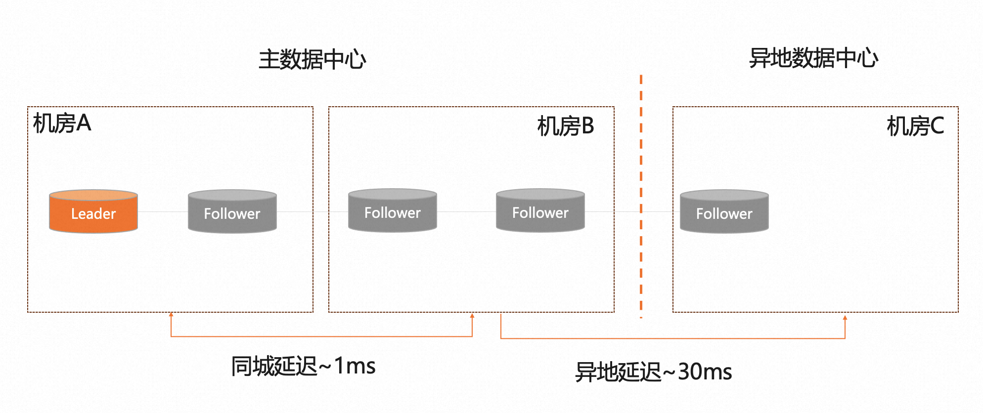 异地数据中心 机房C | AZ 5 | 1 (Follower) | 1 (Follower) | 1 (Follower) | 1 (Follower) |