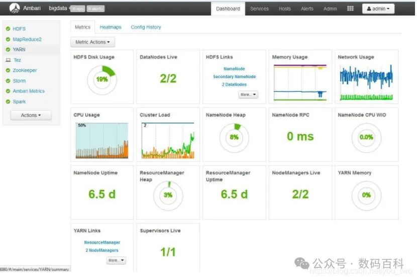 🔹 Ambari:简化Hadoop管理任务,提供用户友好的界面,易于非技术用户操作。