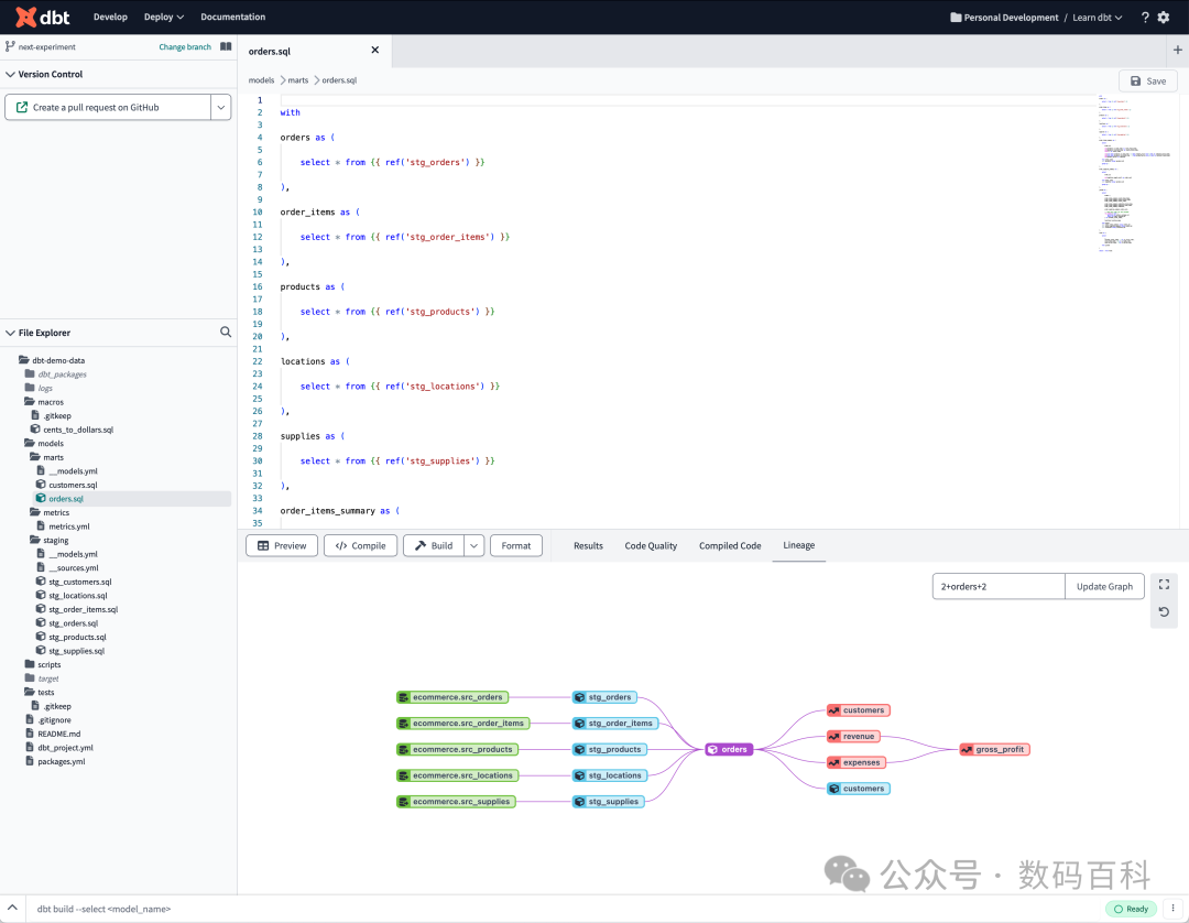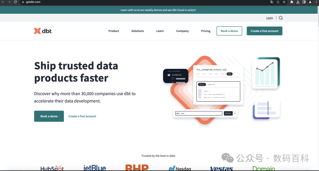 dbt™是一个SQL优先的转换工作流,使团队能够按照模块化、可移植性、CI/CD和文档等软件工程最佳实践快速协作地部署分析代码。现在,数据团队中的任何人都可以安全地为生产级数据管道做出贡献。
