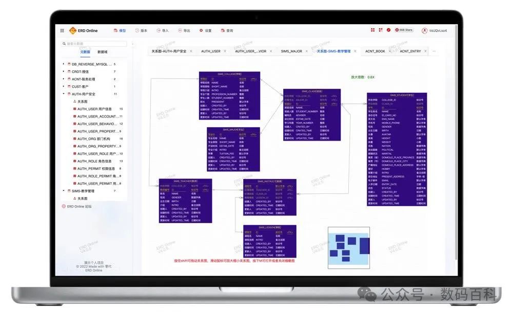 ERD Online 是全球第一个开源、免费在线数据建模、元数据AI平台。集成ChatGPT,提供简单易用的元数据设计、关系图设计、SQL审批查询等功能,辅以版本、导入、导出、数据源、SQL解析、审计、团队协作等功能,方便我们快速、安全的管理数据库中的元数据。