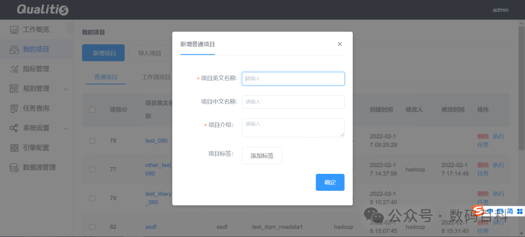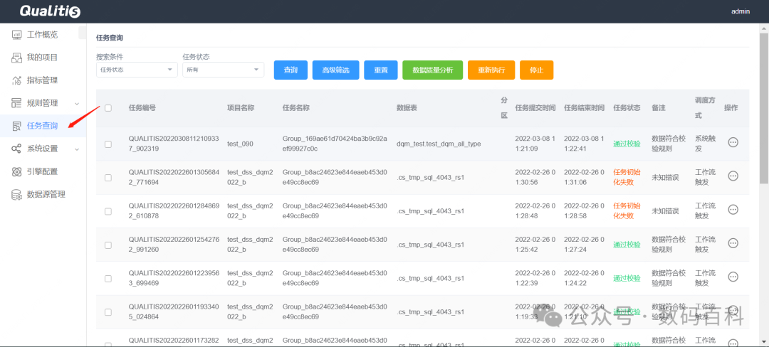 Qualitis是一个支持多种异构数据源的质量校验、通知、管理服务的数据质量管理平台,用于解决业务系统运行、数据中心建设及数据治理过程中的各种数据质量问题。