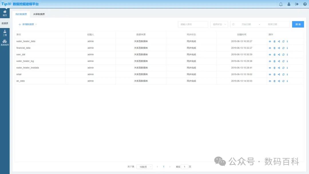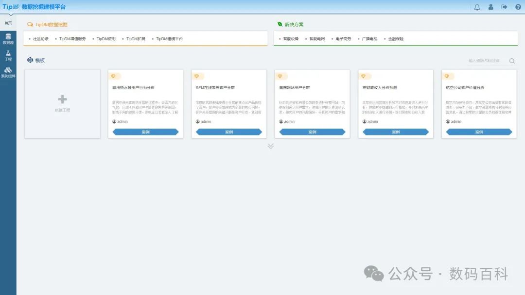 - 提供众多公开可用的数据挖掘示例工程,一键创建,快速运行。