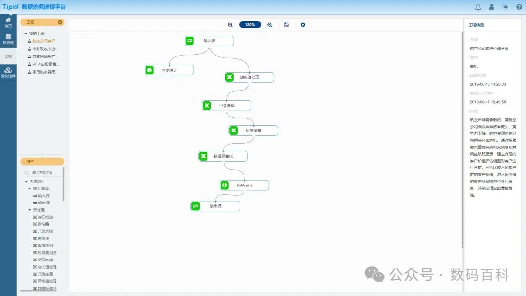TipDM - 建模平台提供数据丰富的数据预处理、 数据分析与数据挖掘组件,是开源的数据挖掘工具。