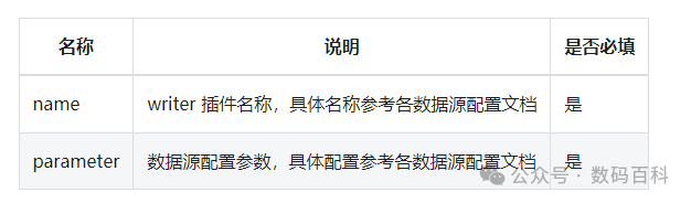Writer 用于配置数据的输出目的地,即数据写到哪里去。具体配置如下所示: