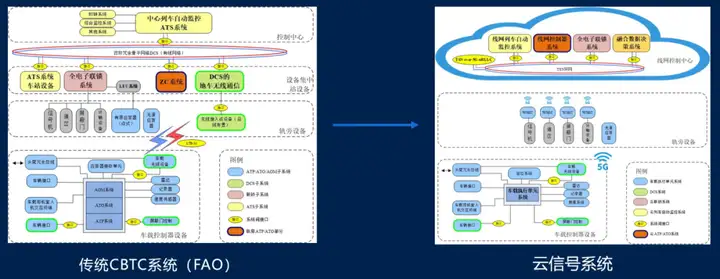 2014 年开始,北京城建智控持续推进云信号系统研发,该系统以“下地·上云”的底层逻辑对原有轨交信号系统进行重构。“下地”指面向传统车载中,因运行环境导致性能受限的情况,将传统车载控制器算力逻辑下放至地面系统,减轻对车上设备的依赖。“上云”指将传统的线路控制中心、设备集中站设备执行的深度计算迁移至中心云平台,通过各种通信安全保障,兼顾实时性和安全性,并进行资源的进一步整合,构建从线网控制中心到执行终端的新一代列车运行控制系统。