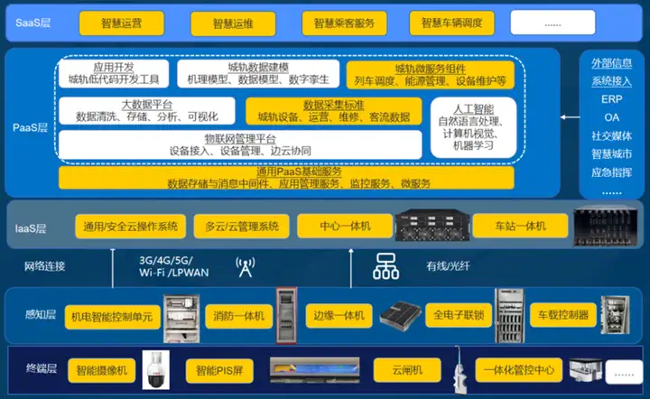 同时,云交自动化系统架构针对轨道交通业务特性进行了相应功能的定制,从终端层、感知层、IaaS 层、PaaS 层、SaaS 层对城轨数据化资产进行管理、表达,从设计、建设、运营、服务全生命周期,对城市轨道交通的系统业务进行重构和优化升级。