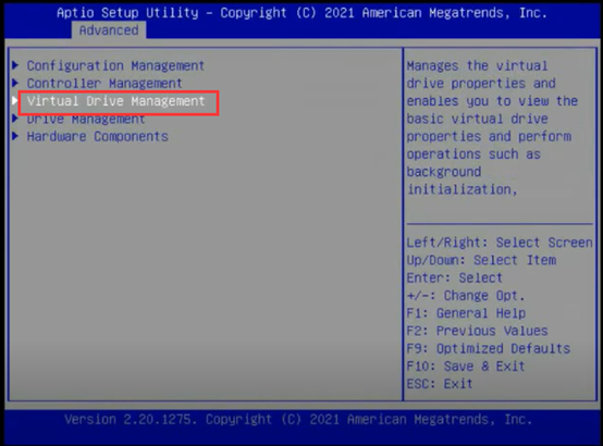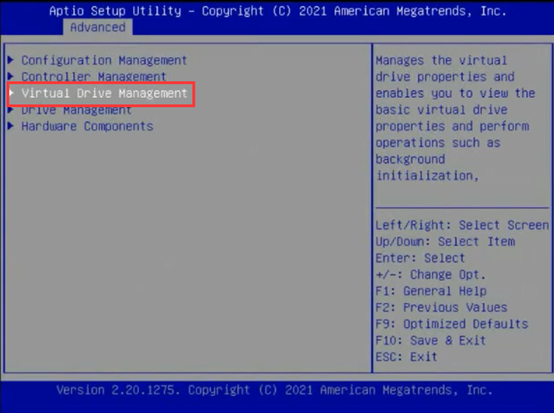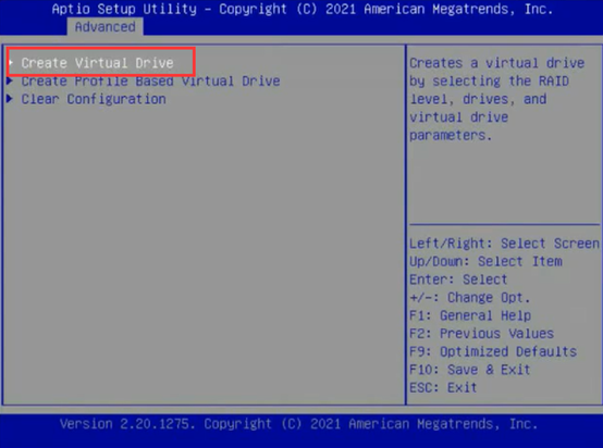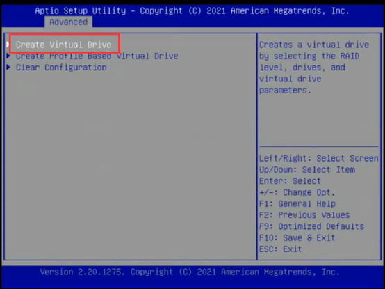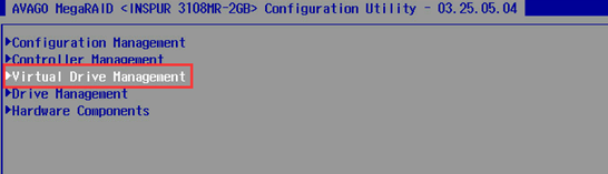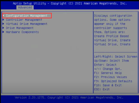 进入”Configuration Management”页面,选择”Create Virtual Drive”,如下图: