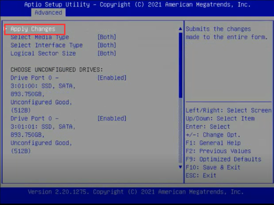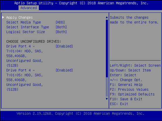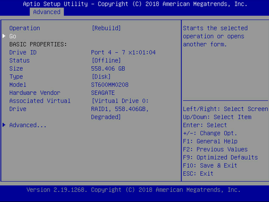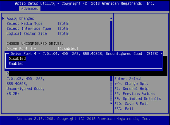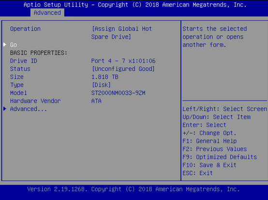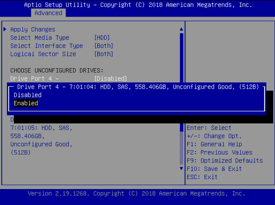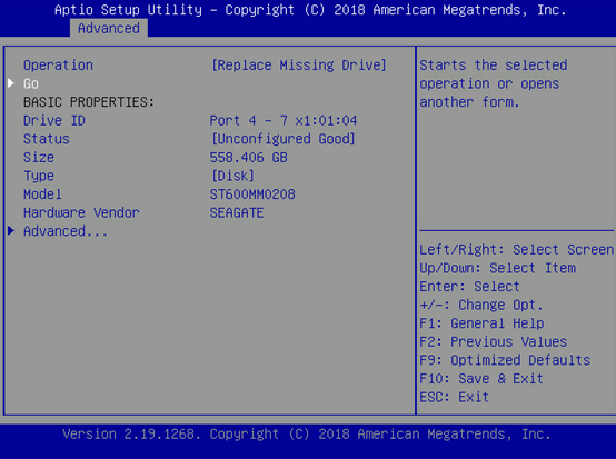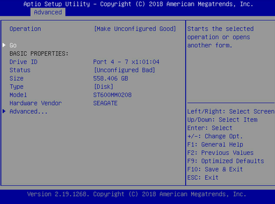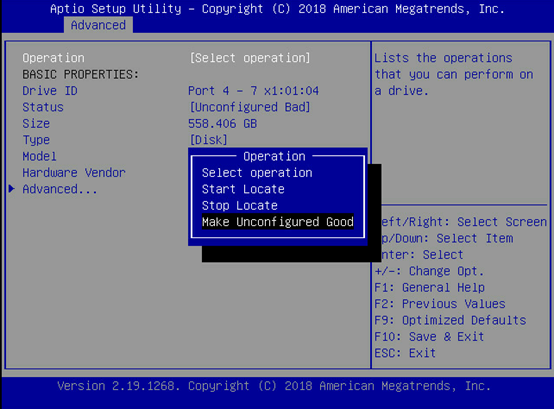 按回车进入UB状态的管理页面,在Operation项目中选择”Make Unconfigured Good”,如下图: