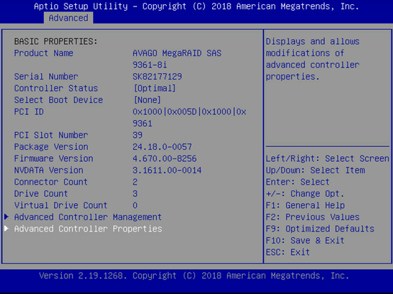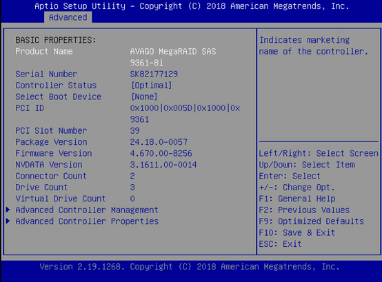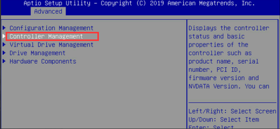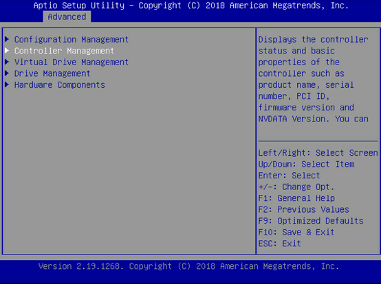 选择”Controller Management”查看RAID卡的产品信息,如下图: