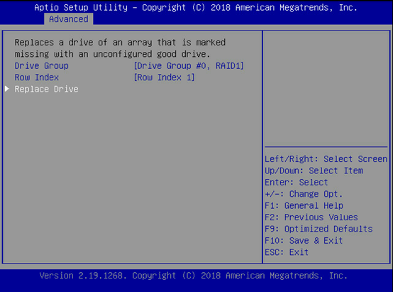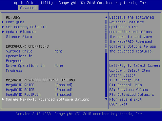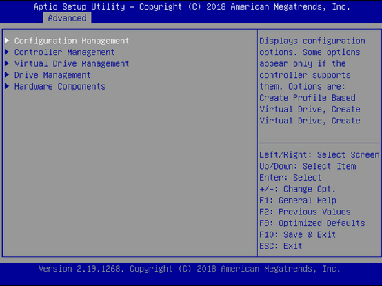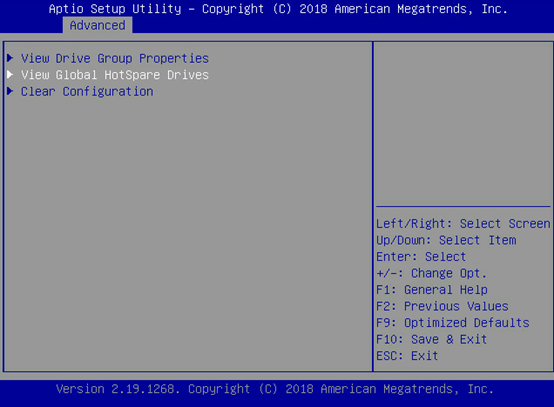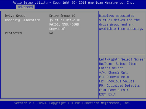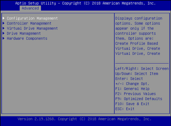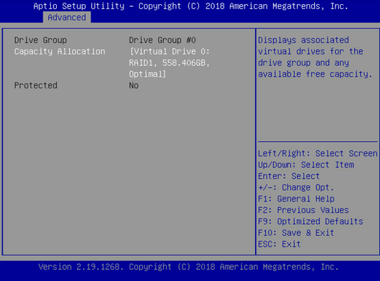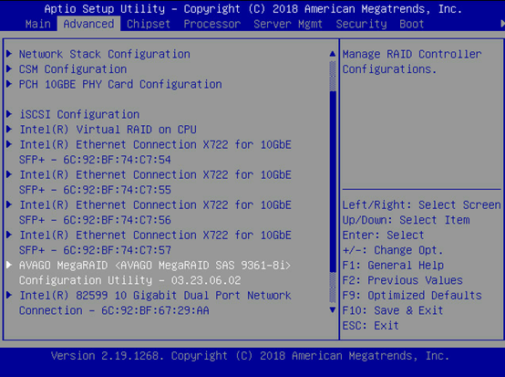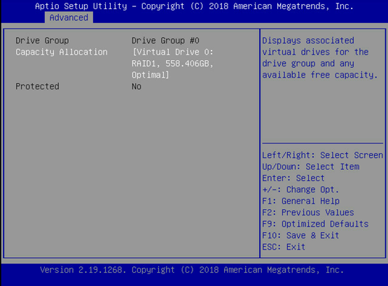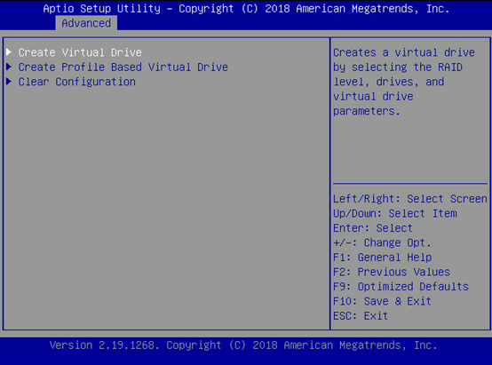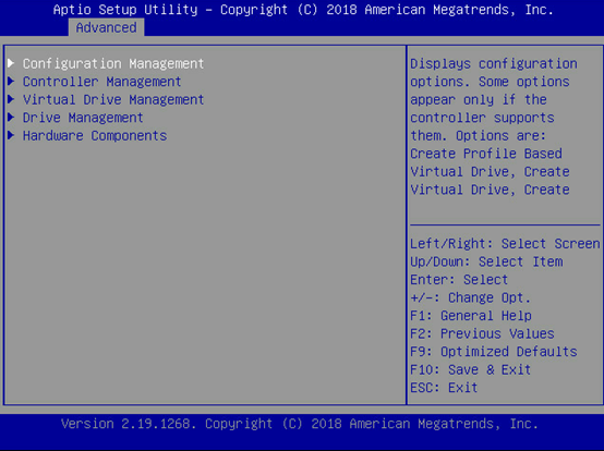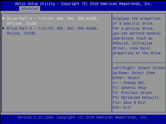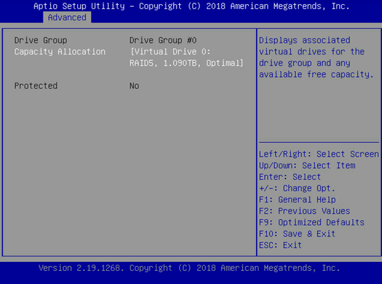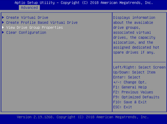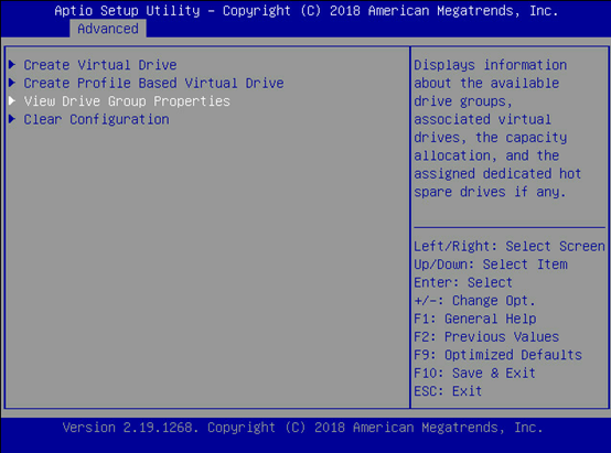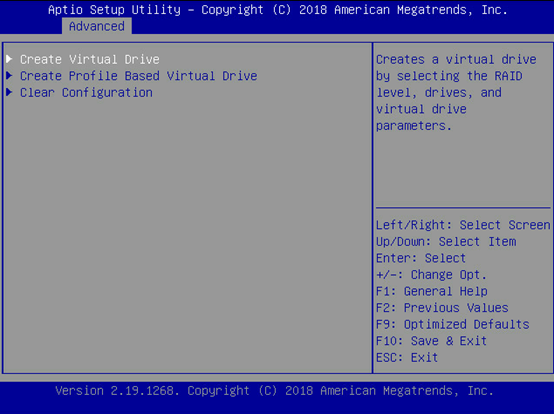 选择”AVAGO MegaRAID … “,进入到RAID配置界面,如下图: