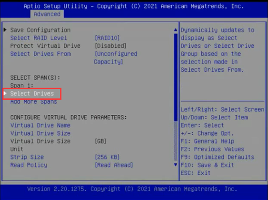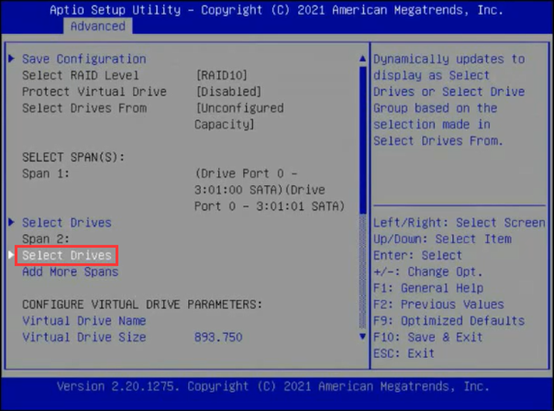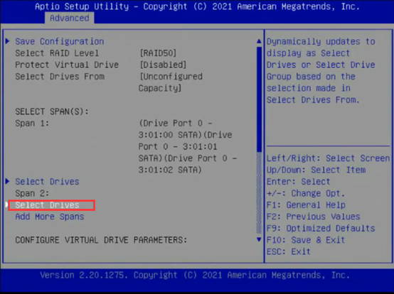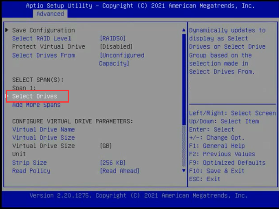 为第一个span选择磁盘,选中Select Drives后选择磁盘