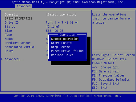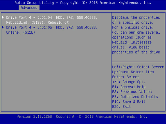 Start Locate/Stop Locate:开启/关闭硬盘定位灯 Initialize Drive:硬盘必须进行初始化才能用来配置RAID