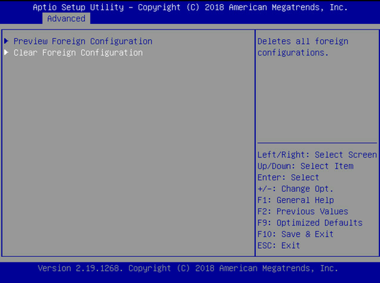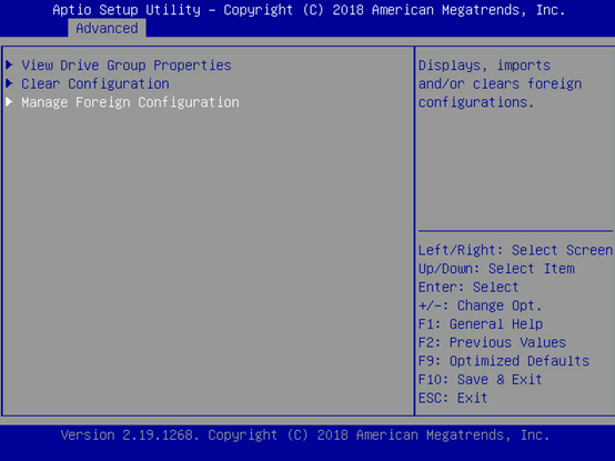 进入到 Configuration Management –Manage Foreign Configuration(只有出现Foregin状态的硬盘才会出现此菜单),如下图: