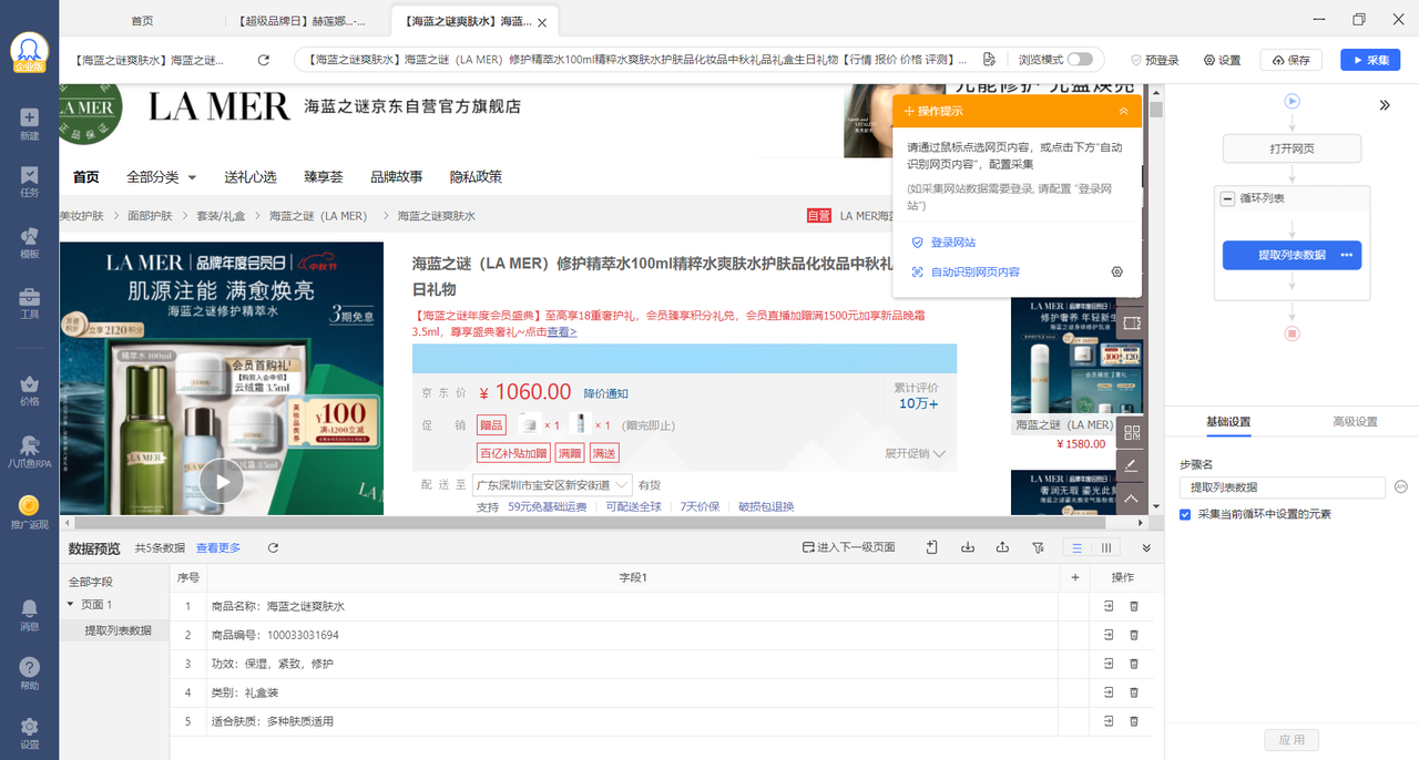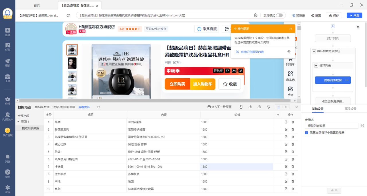 but全网是个很大的概念,粗略统计我们需要采集100多个电商网站的化妆品信息,其数据量之大需要八爪鱼的云采集以及定时采集解决。