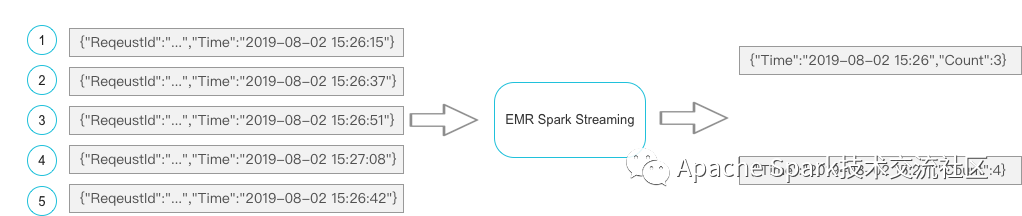SET spark.sql.streaming.checkpointLocation.loghub_source=/home/helloemr;SET spark.sql.streaming.query.trigger.loghub_source=ProcessingTime;SET spark.sql.streaming.query.trigger.intervalMs.loghub_source=10000;INSERT INTO tablestore_sinkSELECT GoodsName,OperationType,count(*) as Count,to_unix_timestamp(window.start, 'yyyy-MM-dd HH:mm:ss') as Time from loghub_sourcewhere delay(__time__)<"2 minute"GROUP BY TUMBLING (__time__, interval 1 minute),GoodsName,OperationType;