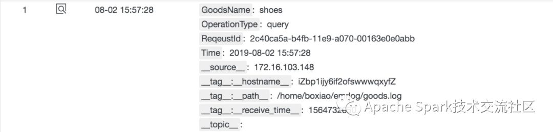日志收集到LogHub以后,可以通过官网控制台查看。本文示例中收集到的数据如下: