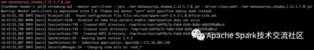 然后再到EMR集群机器的交互式执行环境中创建LogHub数据源表,示例如下: