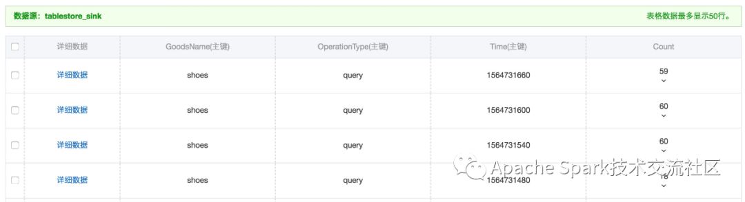 从EMR-3.21.0 版本开始将提供Spark Streaming SQL的预览版功能,支持使用SQL来开发流式分析作业。结果数据可以实时写入Tablestore。