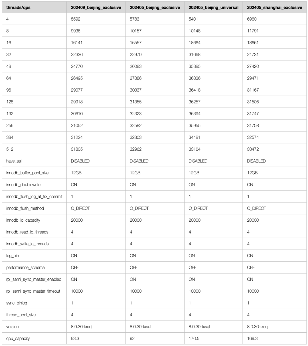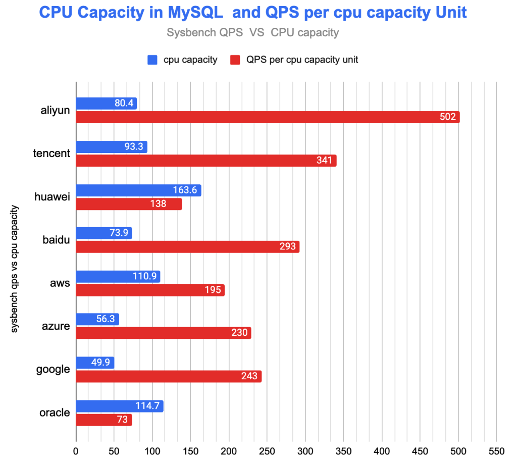 “单位CPU上的Sysbench QPS”(Sysbench QPS per CPU Capacity Unit),很大程度上展现了各个厂商在该测试模型下,对MySQL内核性能优化的效果如何。