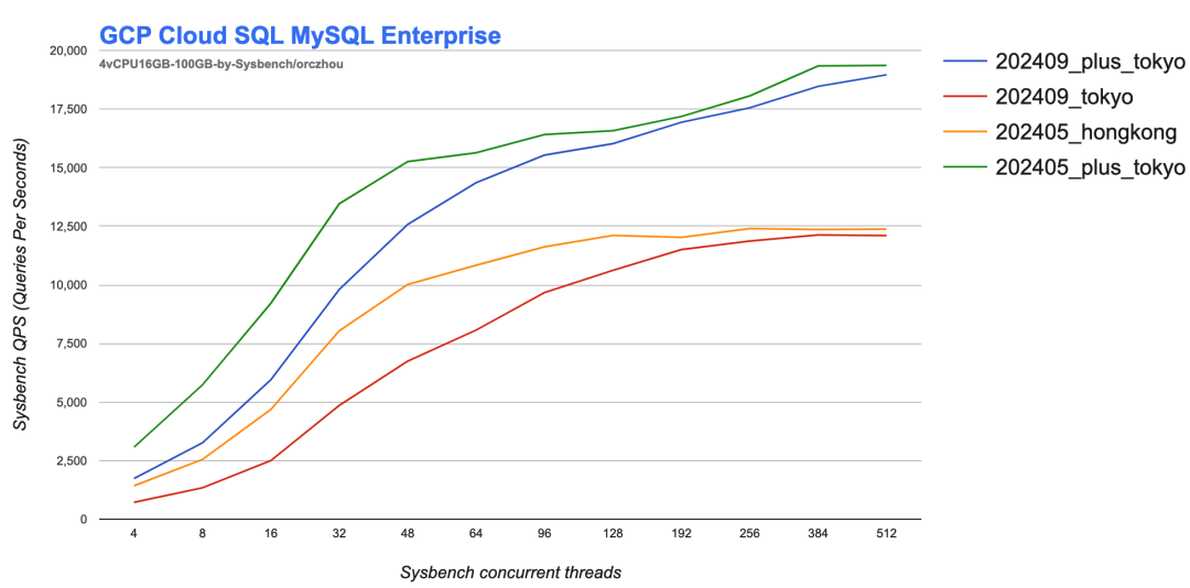 Google云的MySQL托管服务在最近两年里做了非常多的增强,一方面推出了AlloyDB,托管MySQL也推出了Enterprise Plus版本。性能上,202409的测试中,与202405的测试性能并没有太大的差异;此外,它的Enterprise Plus版本的性能提升也非常明显,有着更多的CPU计算性能,也有着更多的内存资源。
