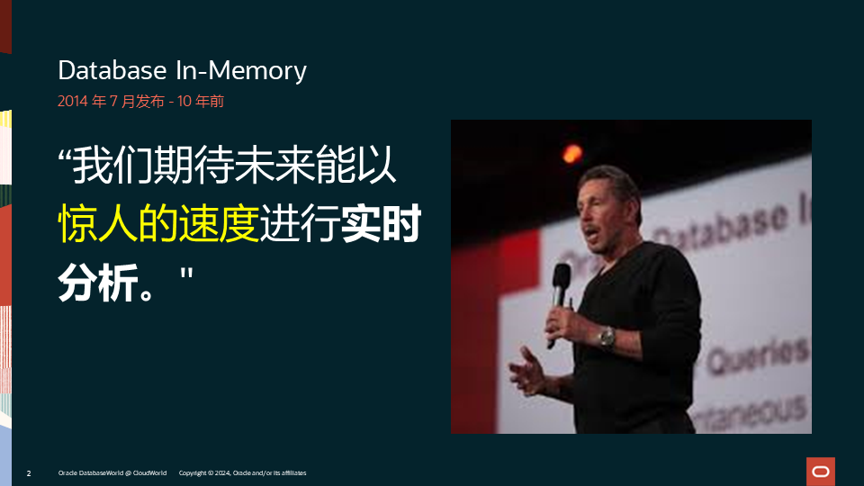 Oracle Database In-Memory 十岁了!2014年7月,Oracle CEO 拉里·埃里森宣布了Oracle Database In-Memory的诞生,这项创新的技术使得数据驱动型企业可以更敏捷和有效地满足业务实时分析的需求。