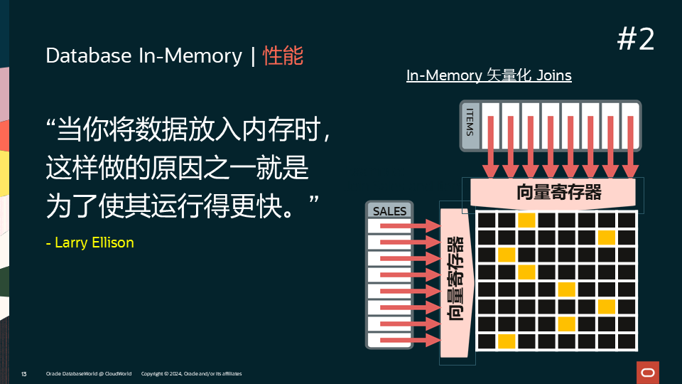 第2项创新就是性能的大幅提升。毋庸置疑,用户使用内存的目的就是希望快,但并非仅仅将数据放到内存中那么简单。Database In-Memory具有丰富的特性来支持性能的提升,包括架构,算法和现代化硬件层面。