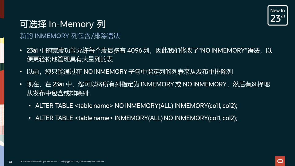接下来,我们将介绍Oracle Database In-Memory在23ai中的新特性。