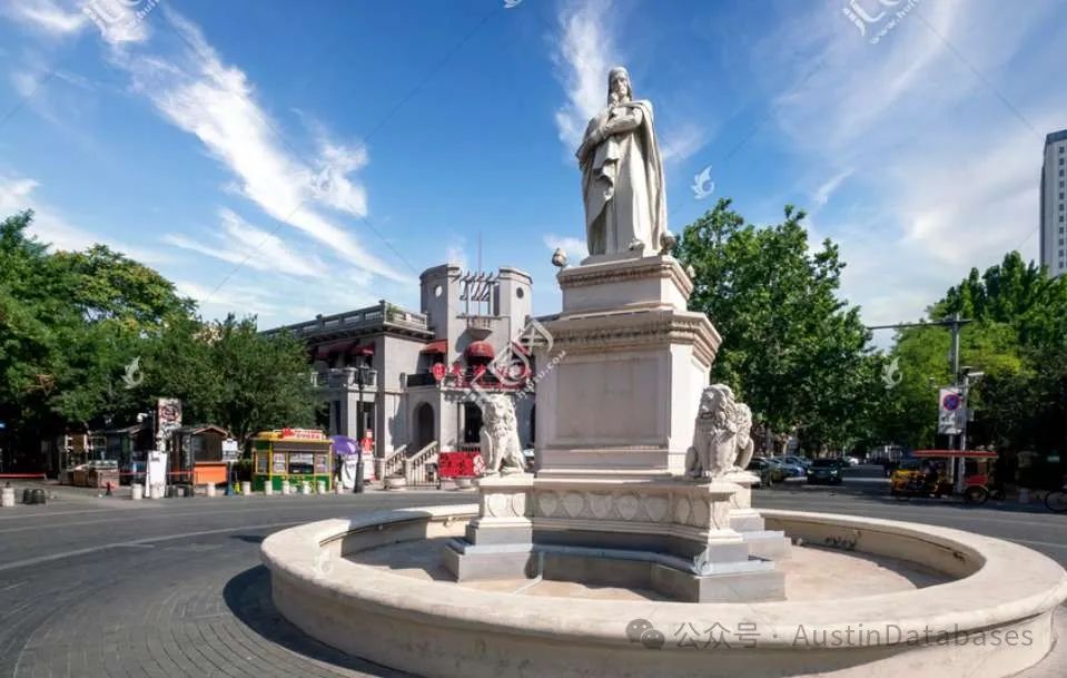 另一座,在中国另一座最大的殖民城市天津,与上海的胜利女神雕像不同,天津的雕像并不是在中国制造的,而是和美国自由女神一样,在国外建造,海运陆运到了天津,组装的原汁原味的欧洲雕像,并且下面是全欧式的许愿池,在夏天还有喷泉从水池的四周,向女神喷水致敬。